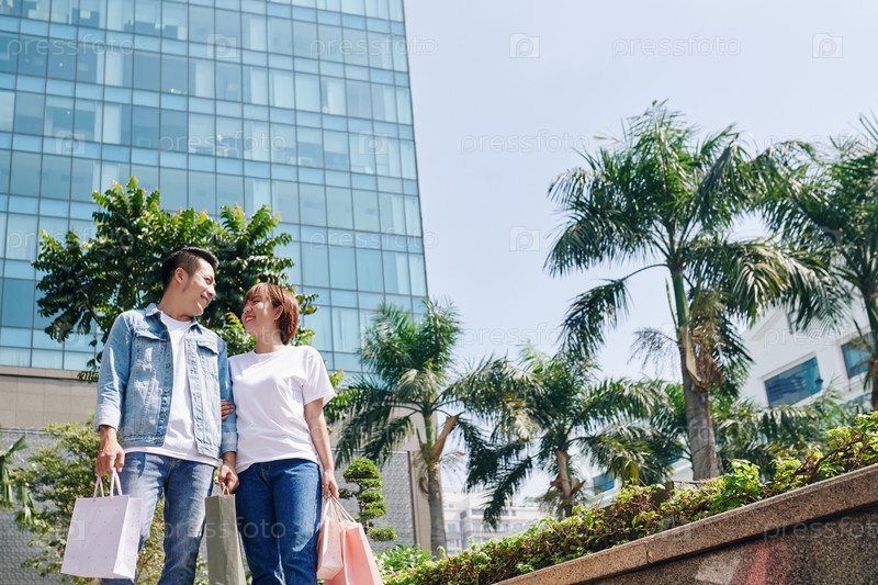 Пара с сумками для покупок на открытом воздухе
