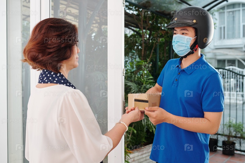 Женщина, принимающая доставку