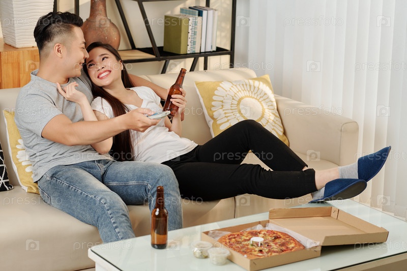 Пара, расслабляющаяся дома