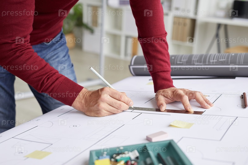 Архитектор, работающий вблизи мужчины