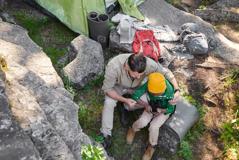 Семья, использующая телефон на улице