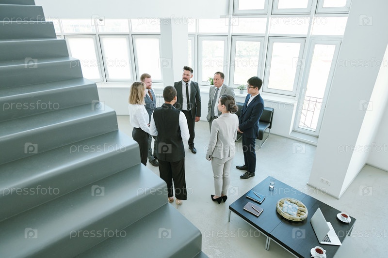 Несколько современных деловых партнеров различных этнических групп стоят в кругу