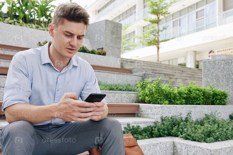 СМС-сообщение нахмуренному бизнесмену