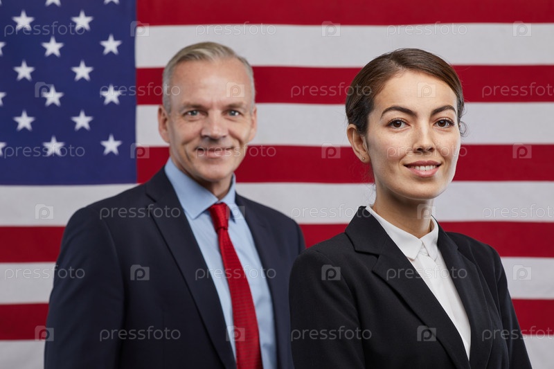 Улыбающиеся политики против американского флага