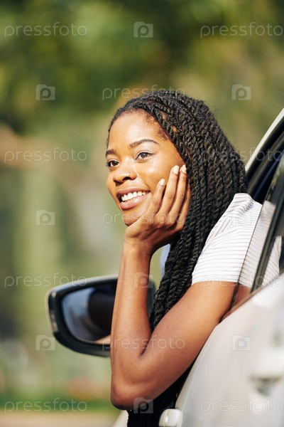 Очаровательная молодая женщина в машине