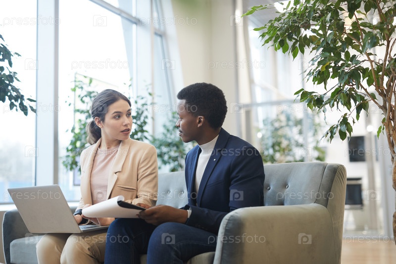 Африканский бизнесмен разговаривает с коллегой в лобби