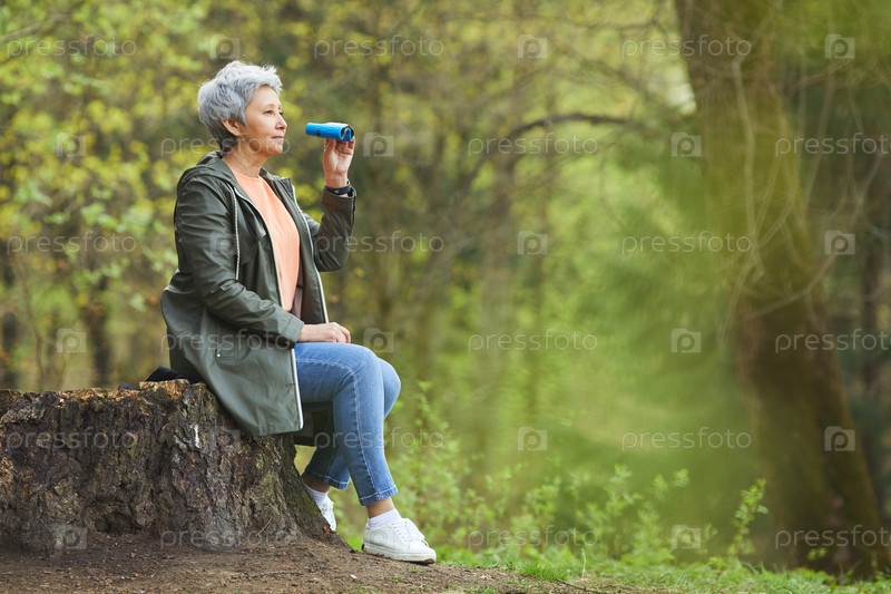 Зрелая женщина смотрит в бинокль Active Side View