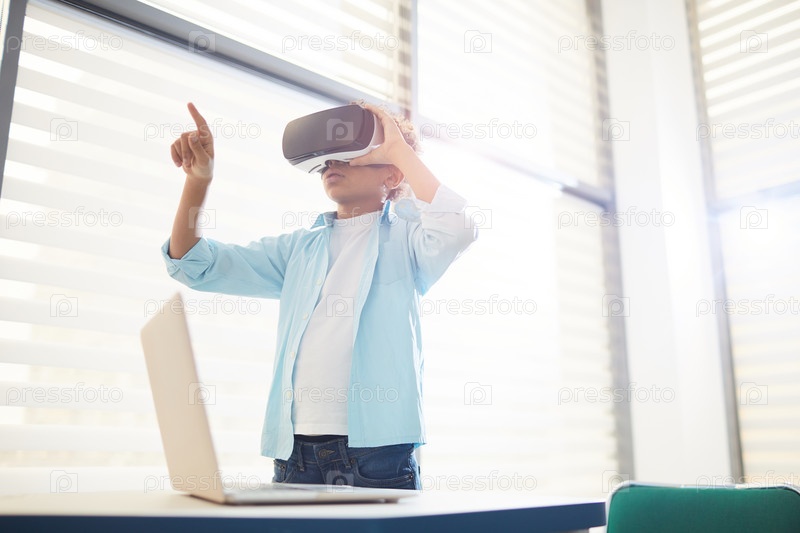 Ученик средней школы использует очки VR
