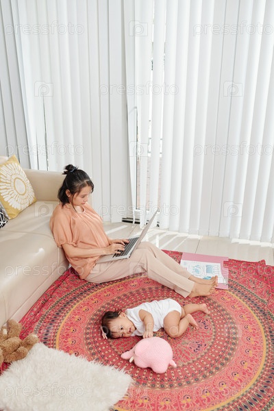 Молодая мать, работающая из дома