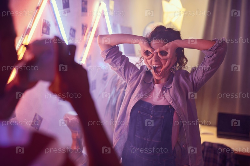 Счастливая девушка позирует перед камерой