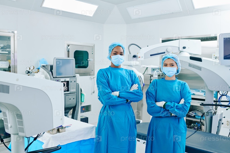 Уверенные молодые помощники хирурга