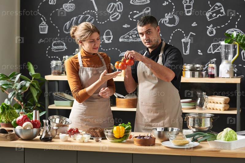 Пара поваров, готовящих вместе