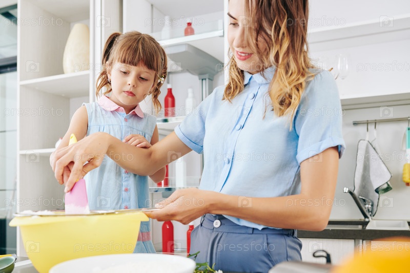 Мать и дочь делают тесто