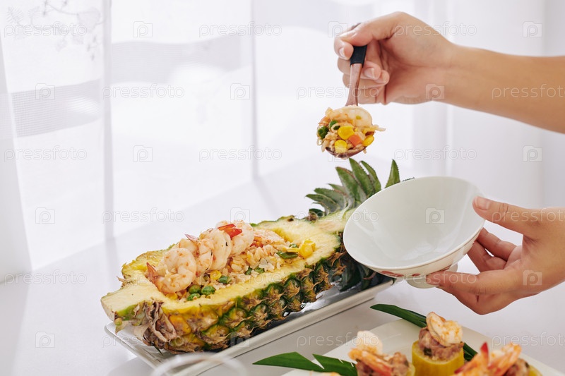 Жареный рис с креветками