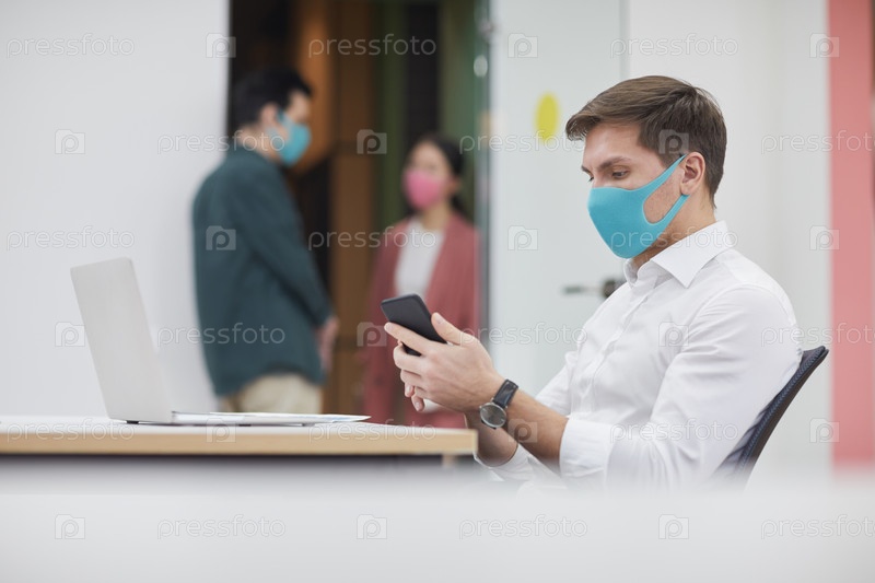 Бизнесмен, использующий телефон в офисе