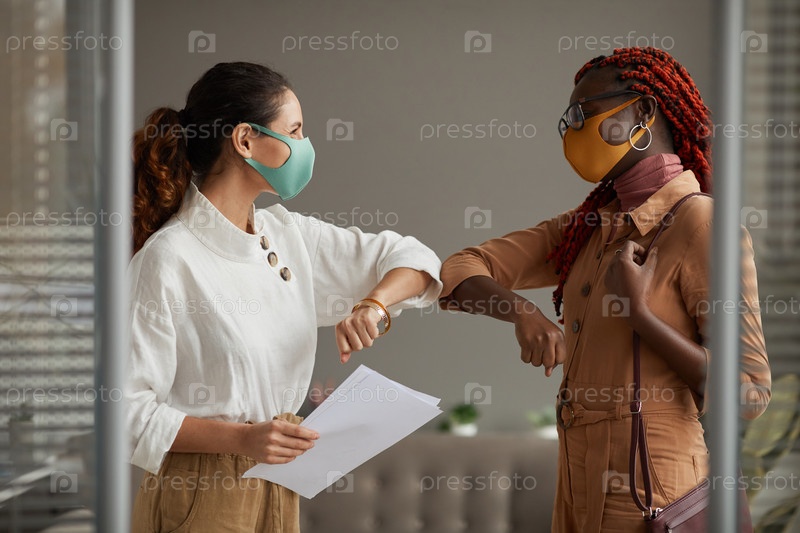 Молодые женщины касаются локтей в качестве приветствия