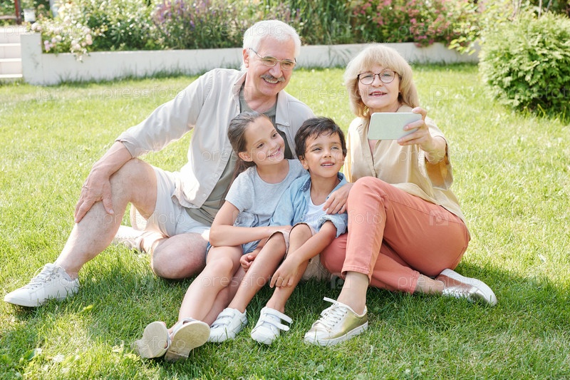 Дедушки и бабушки И внуки, делающие селфи