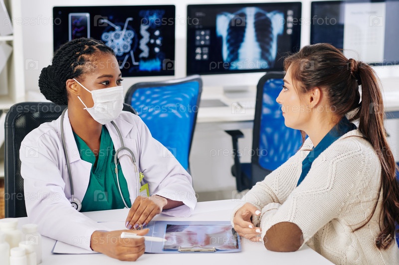 Врач обсуждает рентген с пациентом