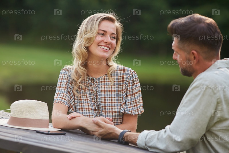 Красивая женщина наслаждается романтическим свиданием на открытом воздухе