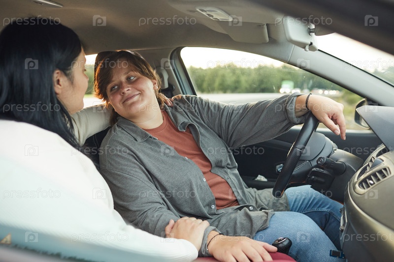 Лесбиянская пара едет на машине