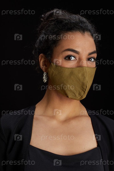 Элегантная женщина смешанной расы, носящая маску на вечеринке Close Up