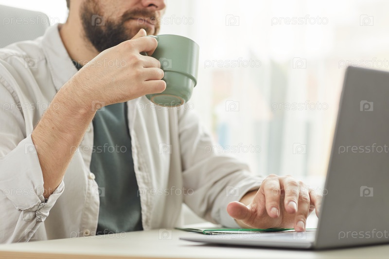 Бородатый мужчина работает из дома