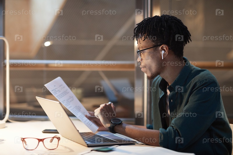 Африканский бизнесмен, работающий с документами