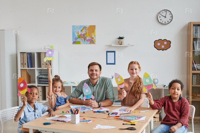 Портрет улыбающихся детей в классе искусств и ремесел