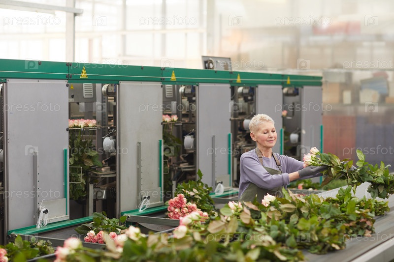 Женщина сортирует цветы