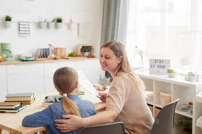 Поддерживающая мать помогает девочке учиться дома