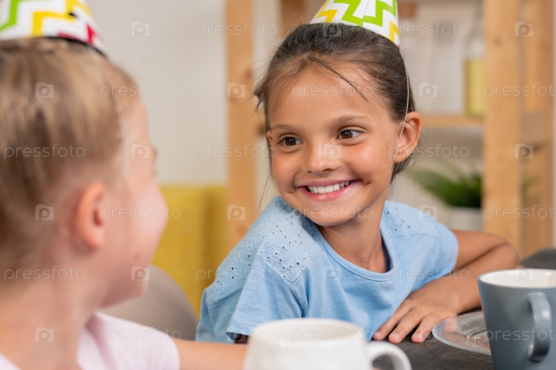 Милые девушки разговаривают и пьют чай