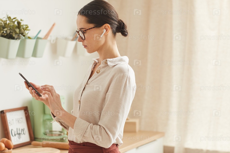 Современная деловая женщина, использующая смартфон дома