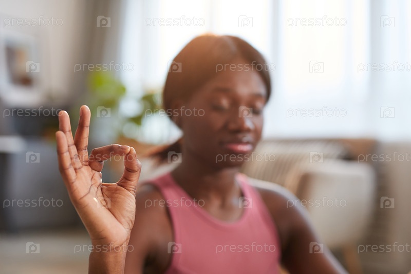 Молодая афроамериканская женщина медитирует вблизи