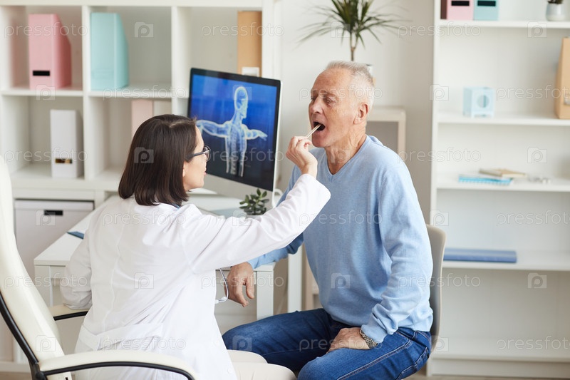 Доктор осматривает старшего человека в клинике