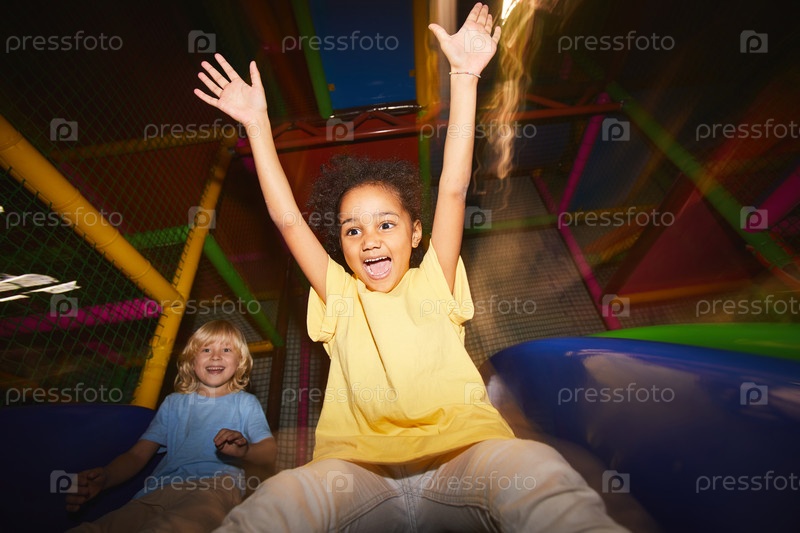 Дети развлекаются на горки