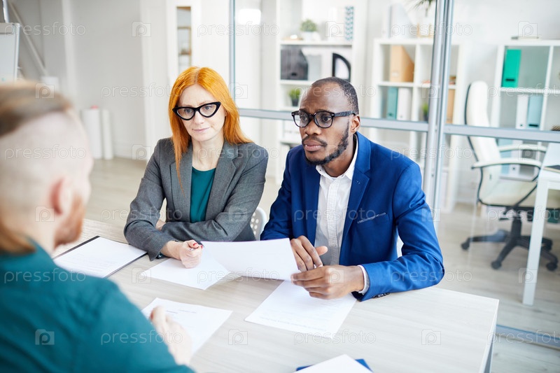 Два бизнесмена проводят собеседование с кандидатом