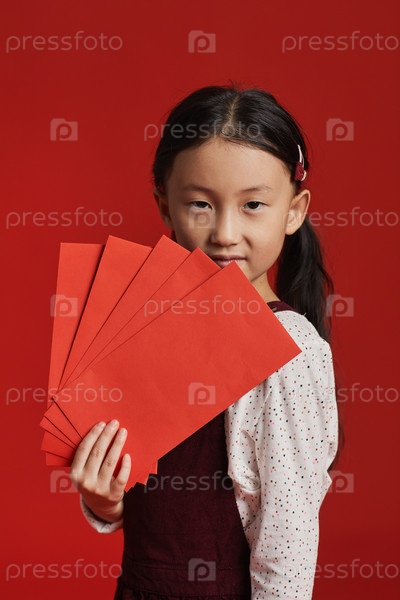 Мальчик с красными конвертами азиатский