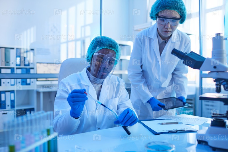 Ученые, работающие в команде в лаборатории