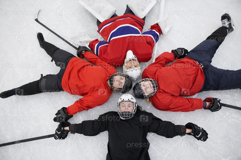 Вся женская хоккейная команда лежит на льду