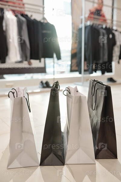 Черно-белые сумки для покупок на полу
