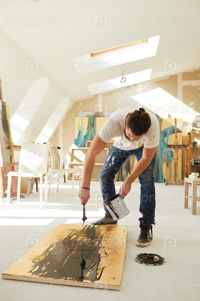 Художник рисует абстрактную картину мужчина