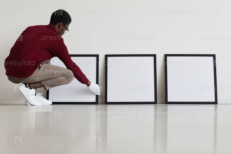 Работник, устанавливающий картины в музее