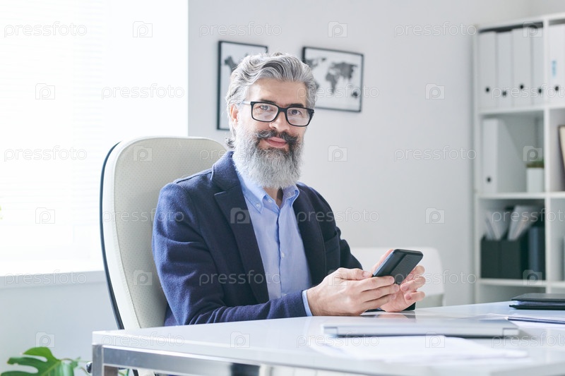 Зрелый бизнесмен со смартфоном
