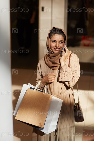 Красивая ближневосточная женщина в торговом центре