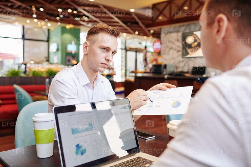 Бизнесмен показывает ежемесячную финансовую отчетность
