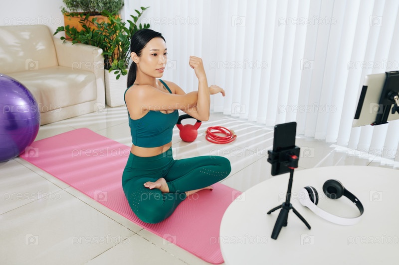 Блогер записывает arms stretch видео