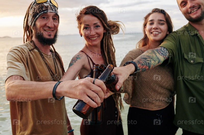 Друзья, стучащиеся из бутылок пива