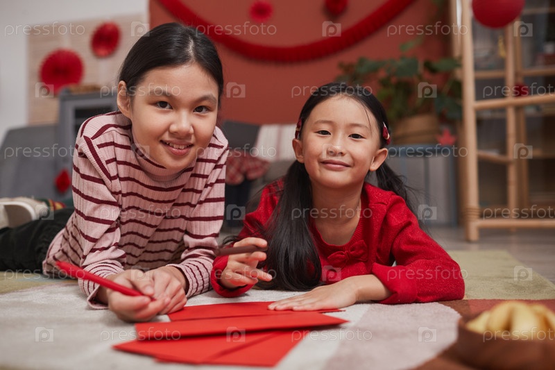 Сестры делают подарочные красные конверты