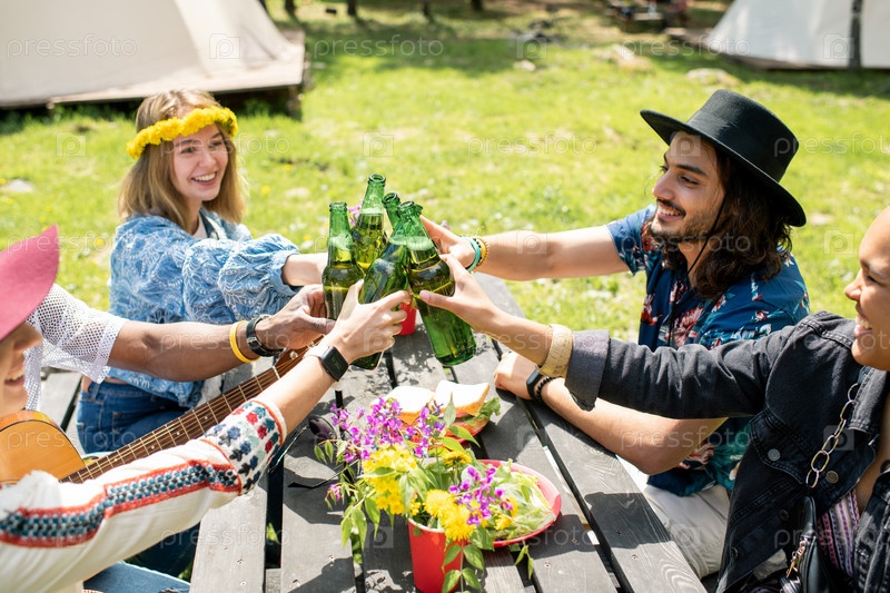 Пить пиво с друзьями на кемпинге