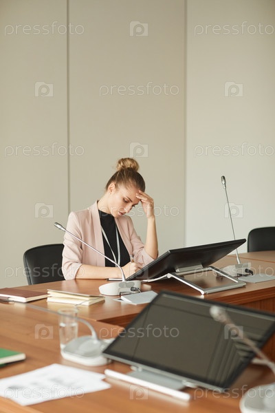 Деловая женщина, работающая за конференц-столом